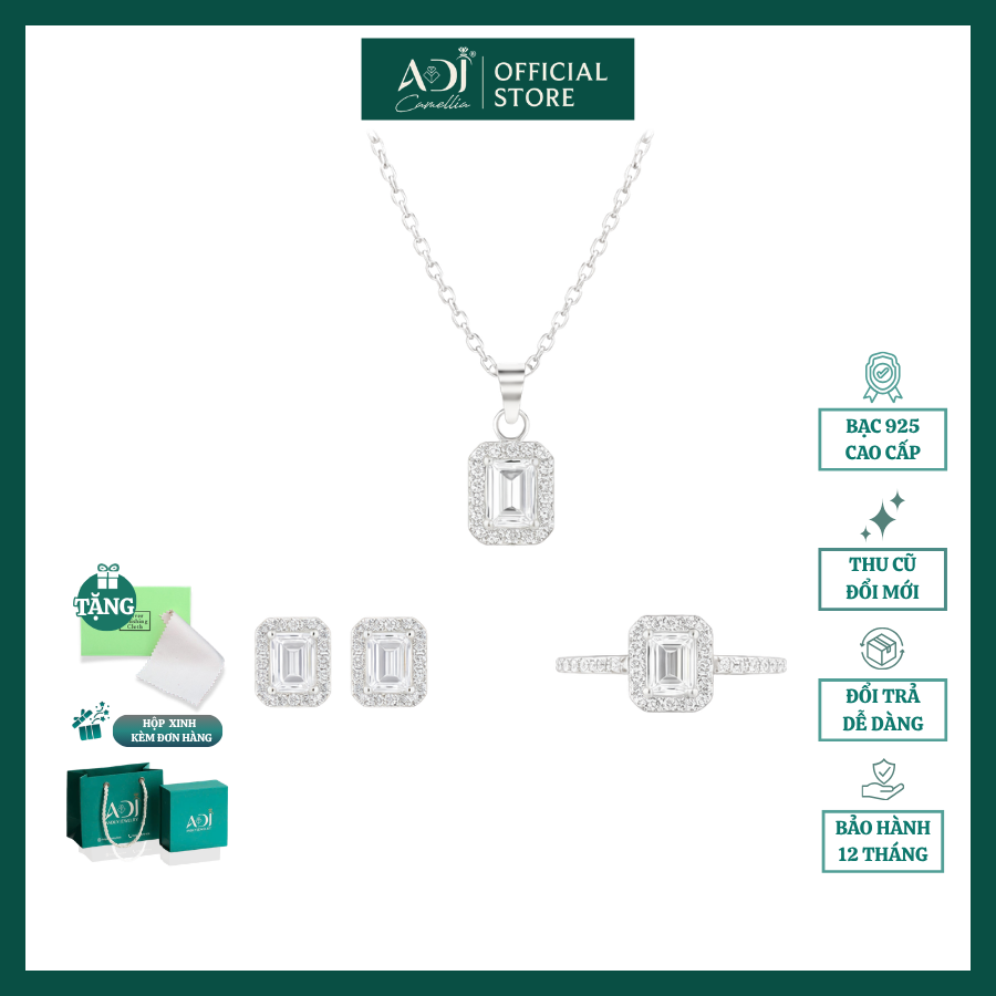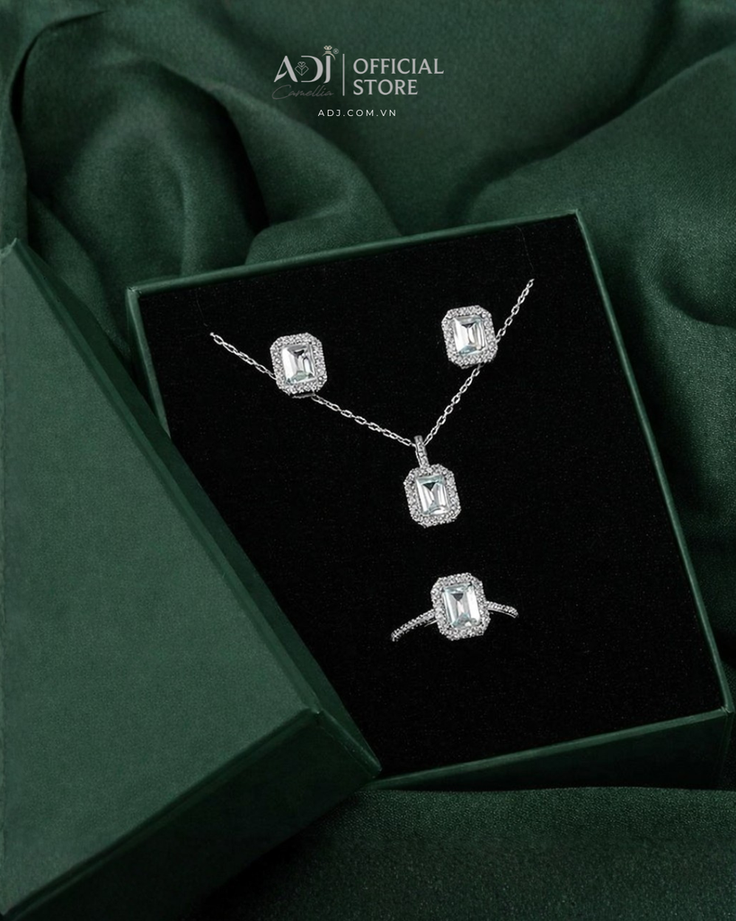 Bộ Trang sức bạc 925 ADJ Tiffany Viên Chữ Nhật To Mang Ánh Sáng Tinh Tế